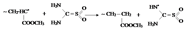 3. Обрыв макромолекулы может проходить через молекулу двуокиси тиомочевины (ДОТ):