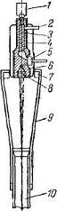 Рис.12. Схема прядильной головки для формования полиакрилонитрильного волокна из размягченного полимера: