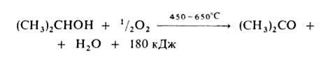 Высокий выход ацетона (≈90%) достигается при использовании Ag, осажденного на пемзе, или серебряной сетке.