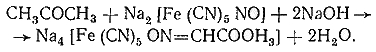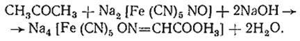 Ацетон с нитропруссидом натрия в щелочной среде дает интенсивно-красную окраску. При подкислении уксусной кислотой окраска переходит в красно-фиолетовую: