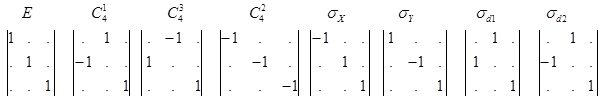 ], и произведем классификацию колебаний этом молекулы. После вычисления характеров приводимых представлений в пространстве 3N