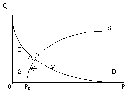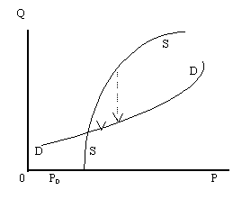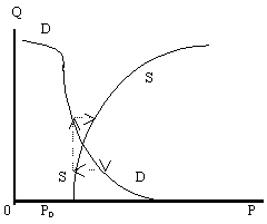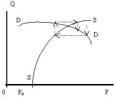 Это приводит к тому, что при первоначальных изменениях объемов или цен предложения (или спроса) динамика обретения устойчивости имеет другой характер. Небольшому изменению цен соответствуют резкие колебания объемов, то есть эластичность объемов по цене будет значительно выше единицы. Таким образом, этот участок равновесной кривой отличается существенной неустойчивостью объемов при небольших изменениях цен. В этом случае эластичность объемов по цене будет значительно выше единицы.