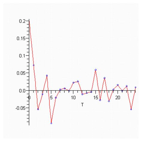 Показатель t служит порядком коэффициента автокорреляции. Для разных t получаем r(t) - автокорреляционную функцию