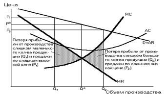 Чтобы достичь максимальной прибыли надо достичь того уровня предоставления услуг при котором предельный доход будет равен предельным издержкам то есть прибыль будет максимизирована. Если обьем предоставления услуг будет меньше чем Q* то у оператора будут потери прибыли ведь он может предоставлять больше услуг и еще получать с них дополнительный доход до достижения объема услуг Q*если же обем будет больше то предельные издержки превысят предельный доход и предоставлять услуги будет не выгодно. Следовательно Q* объем производства максимизирующий прибыль значит оптимальной ценой одной минуты разговора для сотового оператора будет цена P* которая обеспечит сотовому оператору наибольшую прибыль.