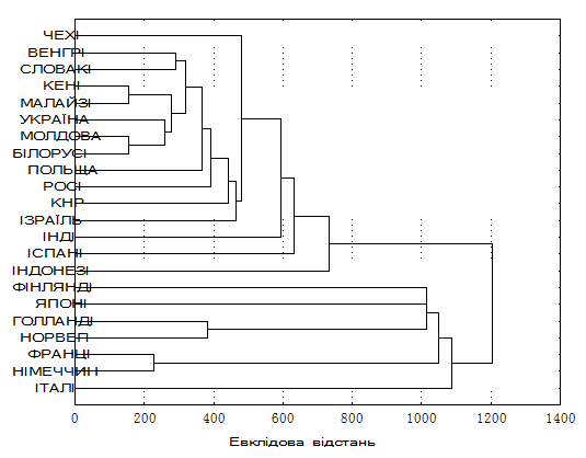 В процесі дослідження використовувались економіко-математичні методи, зокрема для розрахунку і оформлення результатів роботи використовувався статистичний пакет Statistika.Розробці вивіреної стратегії розвитку підприємства сприяє якісний економічний аналіз діяльності підприємства. Для визначення найбільш вигідного ринку для здійснення зовнішньоекономічної діяльності використаний метод кластерного аналізу.