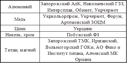 Таблица 3.1. Основные предприятия цветной металлургии Украины
