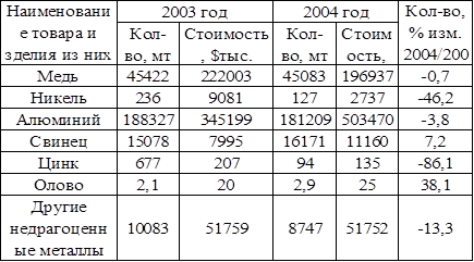 В те же годы стремительно вырос экспорт цветных металлов. Из Украины вывозили все цветные и редкие металлы, готовые изделия и цветной лом, включая разнообразные «серые и черные» экспортные схемы. Вывозили так много, что даже опустошили все многолетние запасы, скопленные во времена СССР.