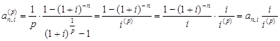 Равенства (19) можно продолжить для ренты пренумерандо, если учесть соотношения коэффициентов дисконтирования обеих рент:
