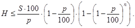 Пусть в банк B1 внесен вклад в S денежных единиц. Будем считать, что свободные резервы банка Bk (k=1,2,...,n-1) в результате ряда операций становятся вкладом в банк Bk+1 (k=1,2,...,n-1), а норма обязательных резервов равна p процентов. Определить минимальное количество n системы банков Bk (k=1,2,...,n), для которых суммарная способность к кредитованию не меньше заданной величины H.