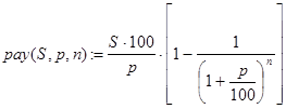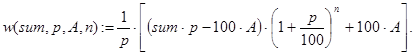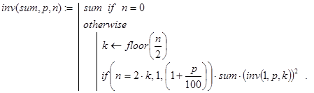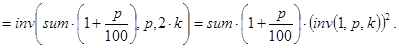 Решение. Пусть invest(sum,p,n) - искомая функция. Вычисления значений invest() можно проводить по известной формуле: