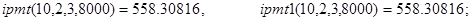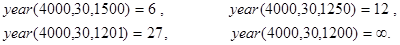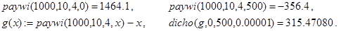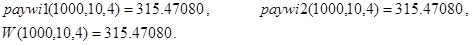 Замечание. Обратим внимание на следующее обстоятельство. При решении уравнения g(nper,pmt,pv,x) =0 с вычислениями по (34) могут появиться “посторонние корни” - значения x* ºrate1(nper,pmt,pv,x*), но не являющиеся решениями исходной задачи. Поэтому все полученные корни (35) обязаны подвергнуться проверке по данным задачи, например, на выполнимость условия (31). Ограничимся рассмотрением одного примера.