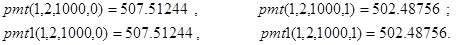 B. type=1. К началу второго периода задолженность инвестору с одной стороны равна (pv-pmt) ×(1+rate/100), а с другой стороны - должна быть погашена вторым платежом pmt. Таким образом
