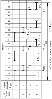 АБ(=АА), ВГ (равное А'Б'), ДЕ – время последующей операции, перекрываемое временем предыдущей операции.