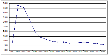 Россия в цифрах. 2006: Крат.ст. сб./Росстат-М., 2006. – С. 167.