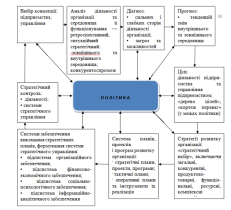 Стратегічне управління — це реалізація концепції, в якій поєднуються цільовий, системний, ситуаційний та інтегральний підходи до діяльності підприємства, що дає змогу встановлювати цілі розвитку, порівнювати їх з наявними можливостями підприємства та приводити їх у відповідність з останніми, розробляючи та реалізуючи систему стратегій.