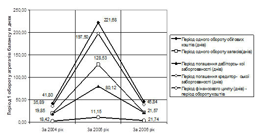 - у 2004 – 2006 роках показник відношення короткострокової дебіторської та кредиторської заборгованостей був суттєво нижче значення стійкого діапазону (більше 1,0), тому для розрахунків з кредиторами необхідно було не тільки отримати кошти дебіторської заборгованості за відпущені товари, але і реалізувати частину продукції, яка знаходилась в товарних запасах та ще не була продана;