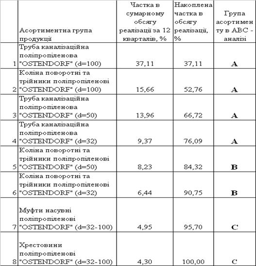 3.1 Впровадження проекту АВС- аналізу управління оптимізацією асортиментом сантехнічної продукції ПП "Монолит Пласт