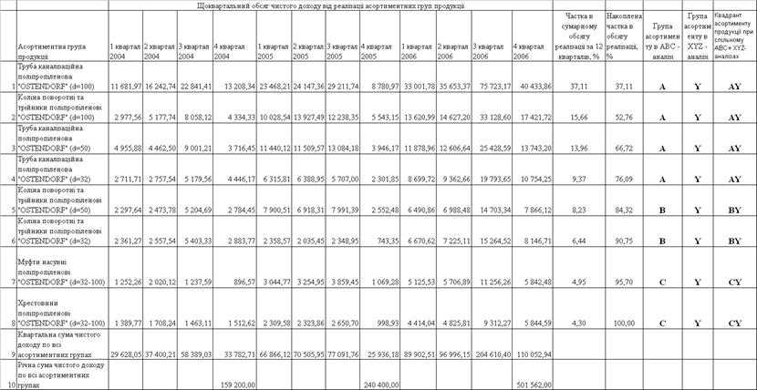 Таблиця 3.3Спільний АВС та XYZ –аналізи продажу асортиментних груп продукції ПП "Монолит Пласт" у 2004 –2006 роках