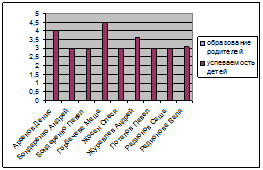 Основную роль в педагогической запущенности играют родители, их педагогическая некомпетентность, низкий уровень образованности, отсутствие педагогических и психологических знаний при подготовке детей к школьной жизни, отсутствие детских дошкольных учреждений. Так при знакомстве с личными делами учащихся 6 класса (рис. 1) и (рис. 2), бесед с родителями выявлена следующая картина: ни одного из 9 учащихся у родителей нет высшего образования. У 2-х учащихся родители имеют среднеспециальное образование, у 1-го ребенка родители имеют основное среднее образование, у остальных 6 ребят родители имеют только основное образование, естественно такие родители не могут помочь ребенку в хорошей подготовке к школе.