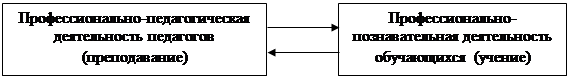 Процесс профессионального обучения включает в себя два взаимосвязанных компонента: профессионально-педагогическую деятельность педагогов и профессионально-познавательную деятельность обучающихся (схема 1).