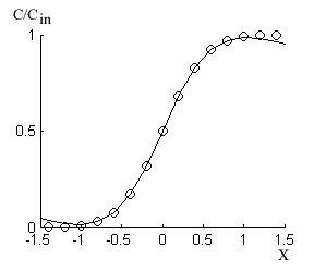 . Иными словами, насколько полученная функция точно описывает фронтальную кривую. Проверить это несложно. Надо сравнить график, полученный решением функции (3) численным способом, и график новой функции. Результаты сравнения показаны на рисунке. В диапазоне x от -1 до 1 погрешность аппроксимации не превышает 0,5 10-2