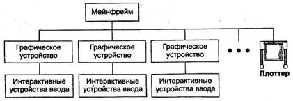 Перша конфігурація складається з мейнфрейму (mainframe) і множини графічних пристроїв (рис.5).