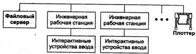 До тієї ж мережі підключаються пристрої виводу — плоттери і принтери. Робоча станція — це графічний пристрій з власними обчислювальними ресурсами. Продуктивність робочих станцій збільшується вдвічі кожен рік при збереженні їх ціни. Даний підхід володіє ще й іншими перевагами. Користувач може працювати з будь-якої станції мережі, вибираючи її у відповідності зі своєю задачею, причому системні ресурси не будуть залежати від задач інших користувачів. Ще одна перевага — це відсутність необхідності в крупних первинних вкладеннях. Кількість робочих станцій і програмних пакетів може збільшуватися поступово,по мірі зростання потреб в ресурсах CAD/CAM/CAE. Це дуже вигідно, тому що вартість обладнання постійно падає.