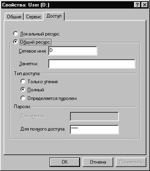 Доступными для общего использования в сети могут быть только ресурсы (диски, папки и принтеры), предназначенные для этого их владельцем, то есть пользователем, работающим с компьютером, на котором эти ресурсы находятся.