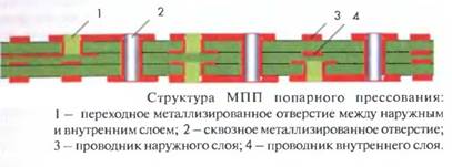 Методом попарного прессования можно изготовить МПП с числом слоев не более четырех, что не всегда позволяет получить необходимую плотность монтажа.