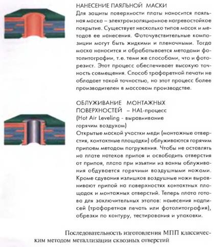 Что касается новых методов, то они неизбежно будут продвигаться вслед за интеграцией элементной базы, увеличением функциональности аппаратуры, уменьшением ее габаритов и массы. Если рассматривать эту проблему с позиций российской действительности, то вслед за потерей темпов развития российской микроэлектроники можно потерять всю отечественную электронную индустрию, если допустить отставание в высоких технологиях печатных плат. Поэтому в этот раздел включены и перспективные методы, и схемы изготовления МПП, уже обсуждающиеся мировой общественностью технологов печатных плат.