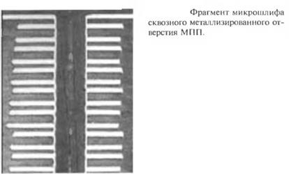 На рис. 1.25 для иллюстрации реальной структуры МПП показан фрагмент микрошлифа сквозного металлизированного отверстия.