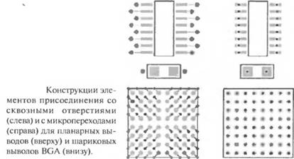 На рис. L.26 показано, как меняются конструкции элементов присоединения, когда МПП изготавливаются с микропереходами.