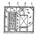 В холодильных шкафах ШХ – 1,40 и ШН – 1,0 продукт охлаждается за счет активного перемещения воздуха, подаваемого вентилятором воздухоохладителя. В холодильных шкафах с испарителем теплоноситель перемещается благодаря разности удельного веса холодного и теплого воздуха.