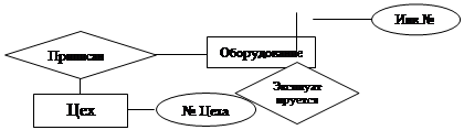 Рассмотрим отношение «оперативный журнал». Прежде всего, поступающее на ремонт оборудование имеет заводской инвентарный номер в случае же отсутствия индивидуального номера, таковой присваивается согласно правилам сохранения индивидуальности. Инвентарный номер является ключевым атрибутом. Сущности «Оборудование» и «Номер цеха» имеют связь 1:1, так как одно оборудование может быть только из одного цеха. Обе сущности имеют обязательный класс принадлежности. Сущности «Оборудование» и «Наименование системы» имеют связь 1:1 означающую, что одно оборудование может работать в одной системе.
