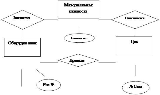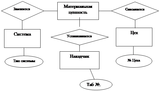 материальная ценность и название цеха, имеющими связь 1:1