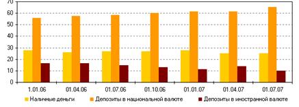 В связи с изменением с 1 января 2004 г. методологии расчета денежной массы данные на начало 2000 - 2007 гг. приведены с учетом начисленных процентов по депозитам физических лиц и нефинансовых организаций.