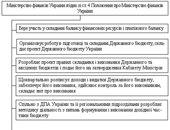 Мінфін України здійснює контроль за виконанням державного бюджету, за дотриманням банківськими установами правил касового виконання державного бюджету по доходах, за дотриманням бюджетного законодавства на всіх стадіях бюджетного процесу.