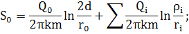 Так как длинна водозаборного ряда 2l=(n-1)*2 =(3-1)*100=200 м и соблюдается условие d l, можем использовать формулу Маскета Лейбензона: