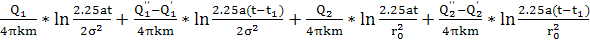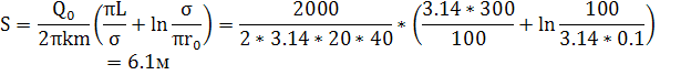 Отметим, что полученное решение будет справедливо для периода эксплуатации водозабора, превышающего время наступления стационарного режима, т.е. tпрог