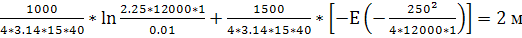 =15м. Фильтр расположен в средней части пласта. Избыточный напор над кровлей известняков Н=25 м.