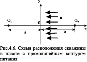 2.1.3 Приток к скважине в пласте с прямолинейным контуром питания