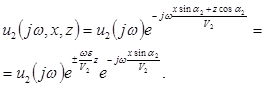 Как отмечалось, SH-волна в выбранных условиях порождает на границе только монотипные (также SH) вторичные волны. Отраженная SH-волна распространяется вверх, в противоположном по отношению к первичной волне направлении. Поэтому в ее волновом аргументе переменная z отрицательна: