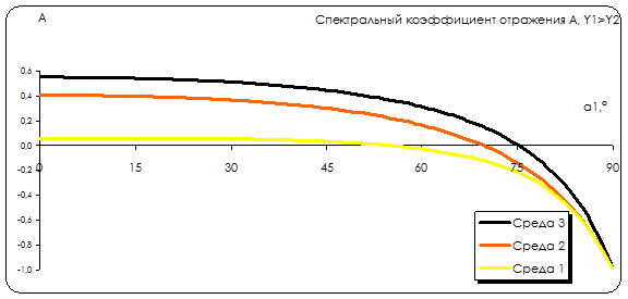 Получим график спектрального коэффициента отражения A в зависимости от угла падения α1