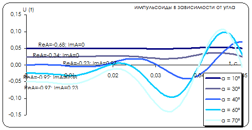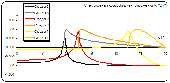 Веса слагаемых - ReA (α) и ImA (α) - изменяются при увеличении угла падения. Соответственно, изменяется по форме и суммарный отраженный сигнал .