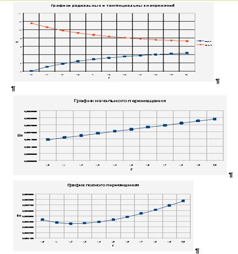 2. Исходя из методов результатов решения, можно заключить, что радиальное напряжение σr имеет прямо пропорциональную зависимость от радиальной координаты r, а тангенциальное напряжение σθ имеет обратно пропорциональную зависимость от r.