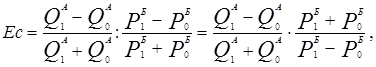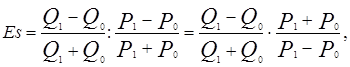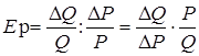 Если обозначить цену Р, а величину спроса Q, то показатель (коэффициент) ценовой эластичности спроса Ep равен: