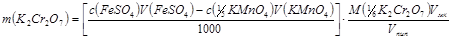 Расчетную формулу для m(К2Cr2О7) получают из соотношений количеств веществ для стадий 1 и 2: