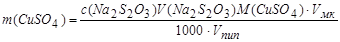 Для двух стадий титрования можно записать: n(CuSO4) = n(1/2 I2) = n(Na2S2O3) n(CuSO4) = n(Na2S2O3), откуда