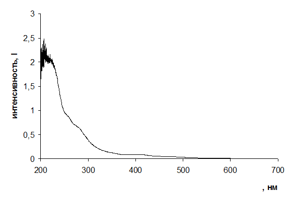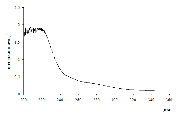 Рис. 1 Спектр поглощения 2,4,6-триметил-5Н-пирроло[3,4-d][1,3]тиазола в гексане.