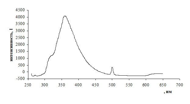 Рис 4. Спектр флуоресценции 2-аминопирроло[3,4-d][1,3]тиазола в гексане.